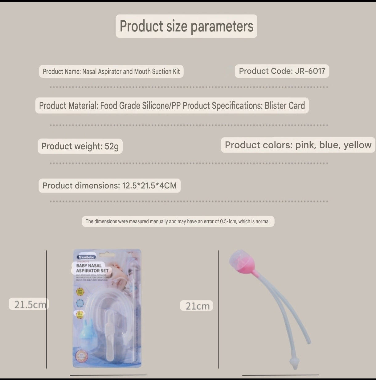 BPA-Free Baby Nasal Aspirator Set with Mouth Section | Anti-Backflow Nasal Aspirator Kit with Safety Filter No reviews from 200000 /per Qty. Add to Cart This item is a recurring or deferred purchase. By continuing, I agree to the cancellation policy and authorize you to charge my payment method at the prices, frequency and dates listed on this page until my order is fulfilled or I cancel, if permitted. Tweet