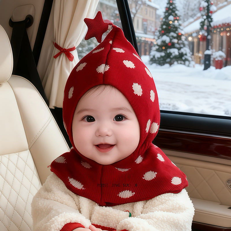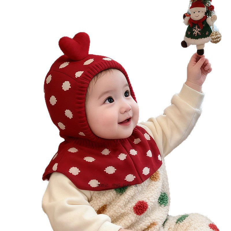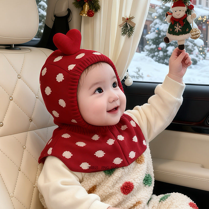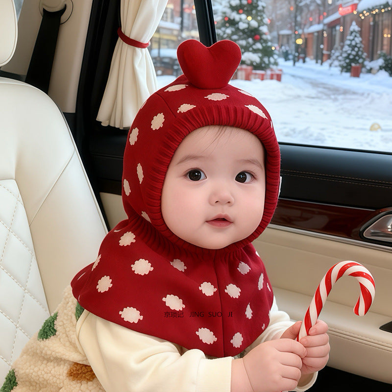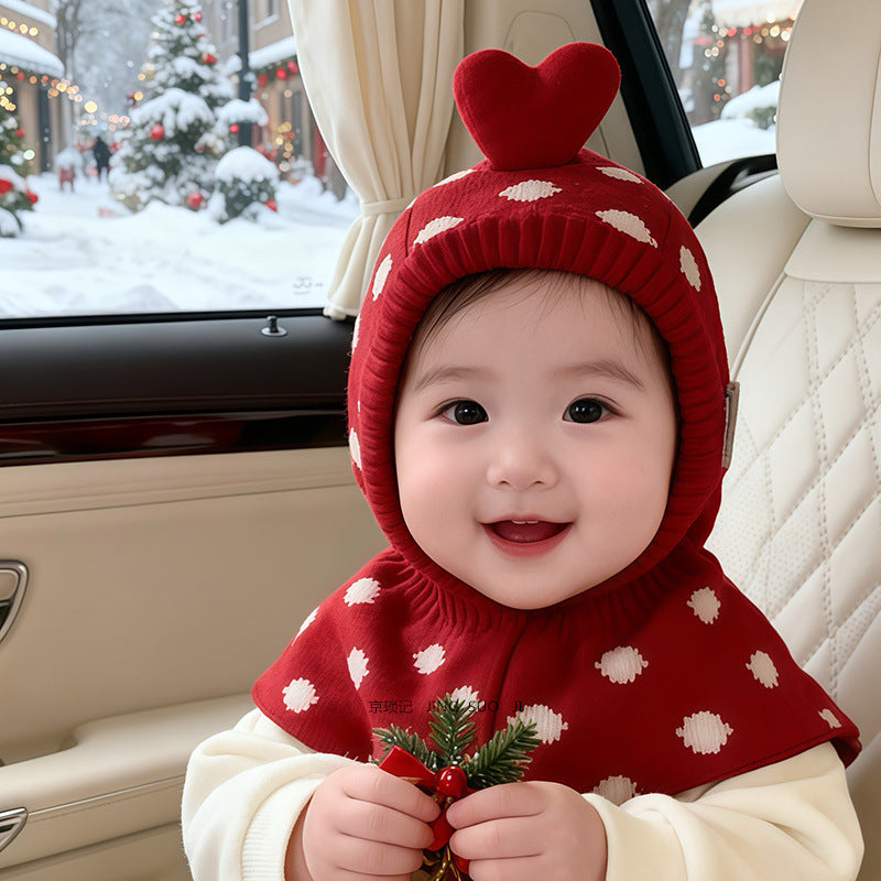 Crafted from premium, skin-friendly fabric, this Christmas hat provides full coverage for the head, ears, and neck, and it's perfect for chilly mornings, cold night outings, and festive photos. The playful heart-shaped top and charming snow-dot design add a joyful touch that instantly brightens any outfit. Its built-in neck guard offers extra protection from cold winds, making winter strolls and holiday events warm and comfortable.