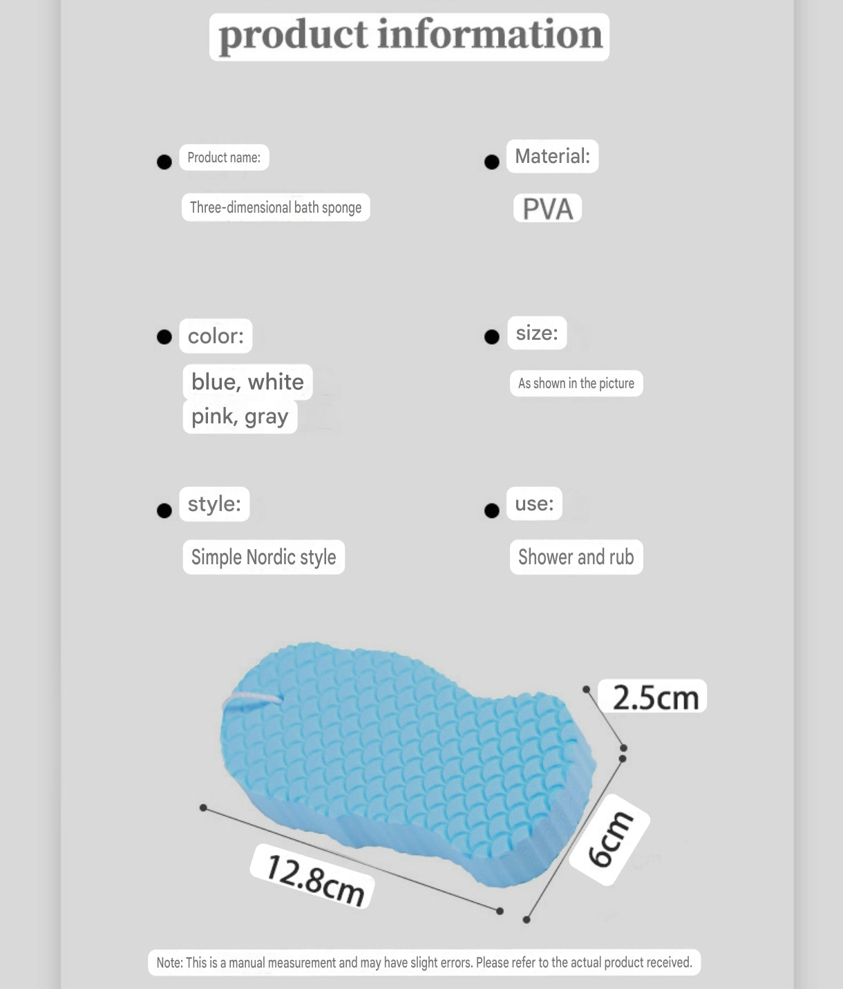 Three-Dimensional Baby Bath Sponge | 3D Exfoliating and Scrubbing Sponge No reviews from 150000 /per Qty. Add to Cart This item is a recurring or deferred purchase. By continuing, I agree to the cancellation policy and authorize you to charge my payment method at the prices, frequency and dates listed on this page until my order is fulfilled or I cancel, if permitted. Tweet