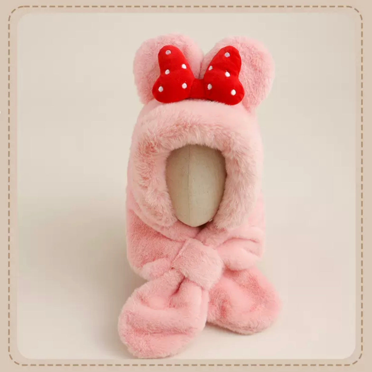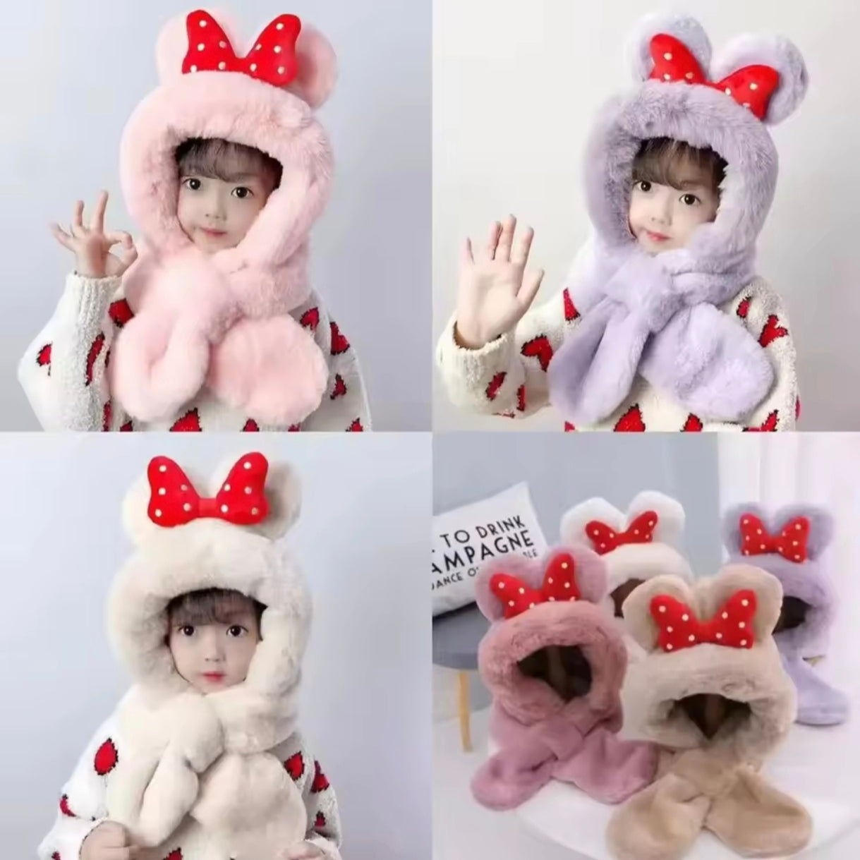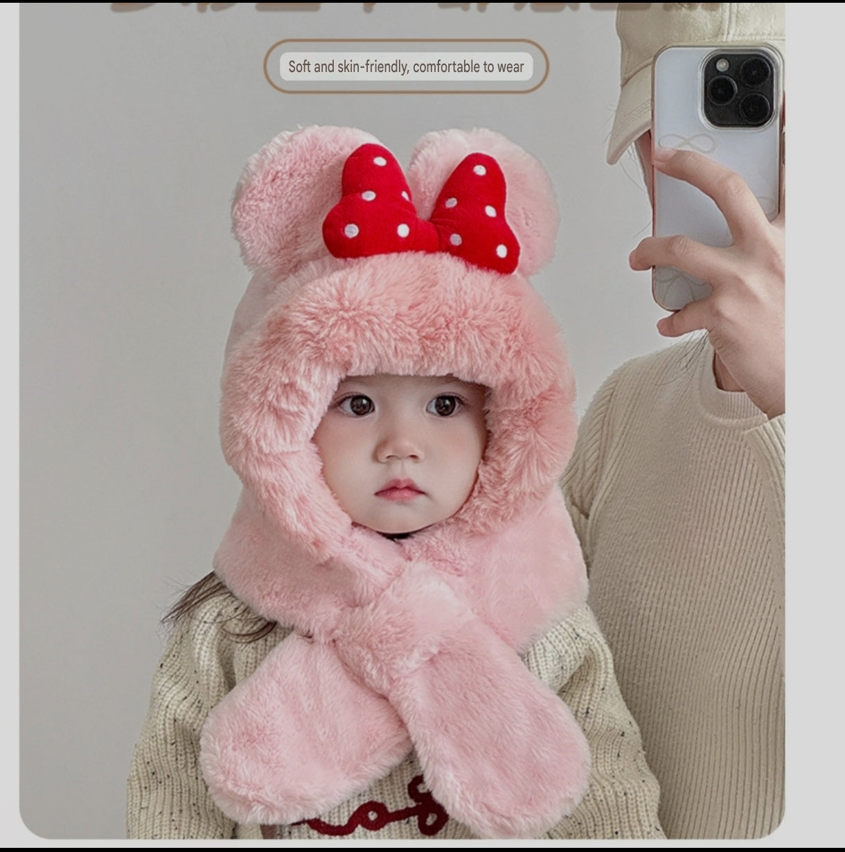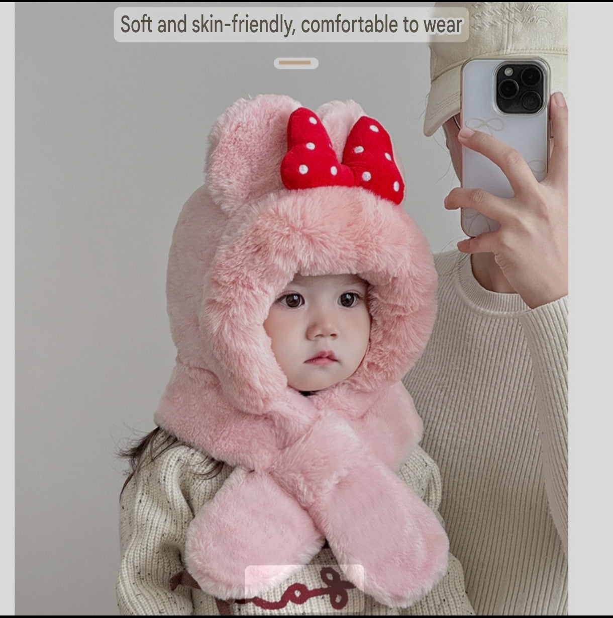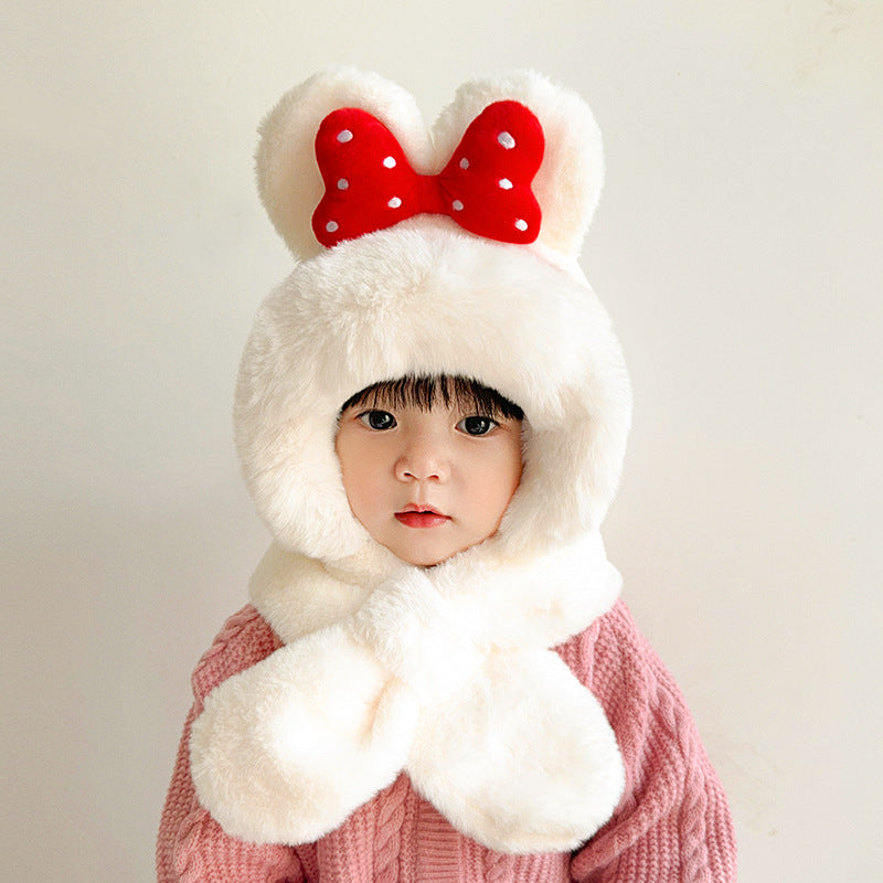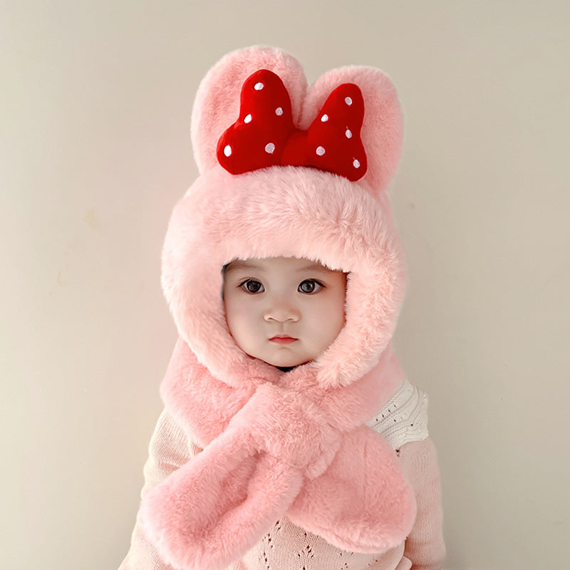 With its big fluffy ears and charming red bowknot, this hat gives every child a playful, cartoon-inspired look that melts hearts instantly. The built-in scarf design allows a snug wrap-around fit, ensuring windproof comfort and preventing heat loss—even on the chilliest days. Soft, breathable, and gentle on delicate skin, it keeps your child warm without feeling heavy or itchy.
