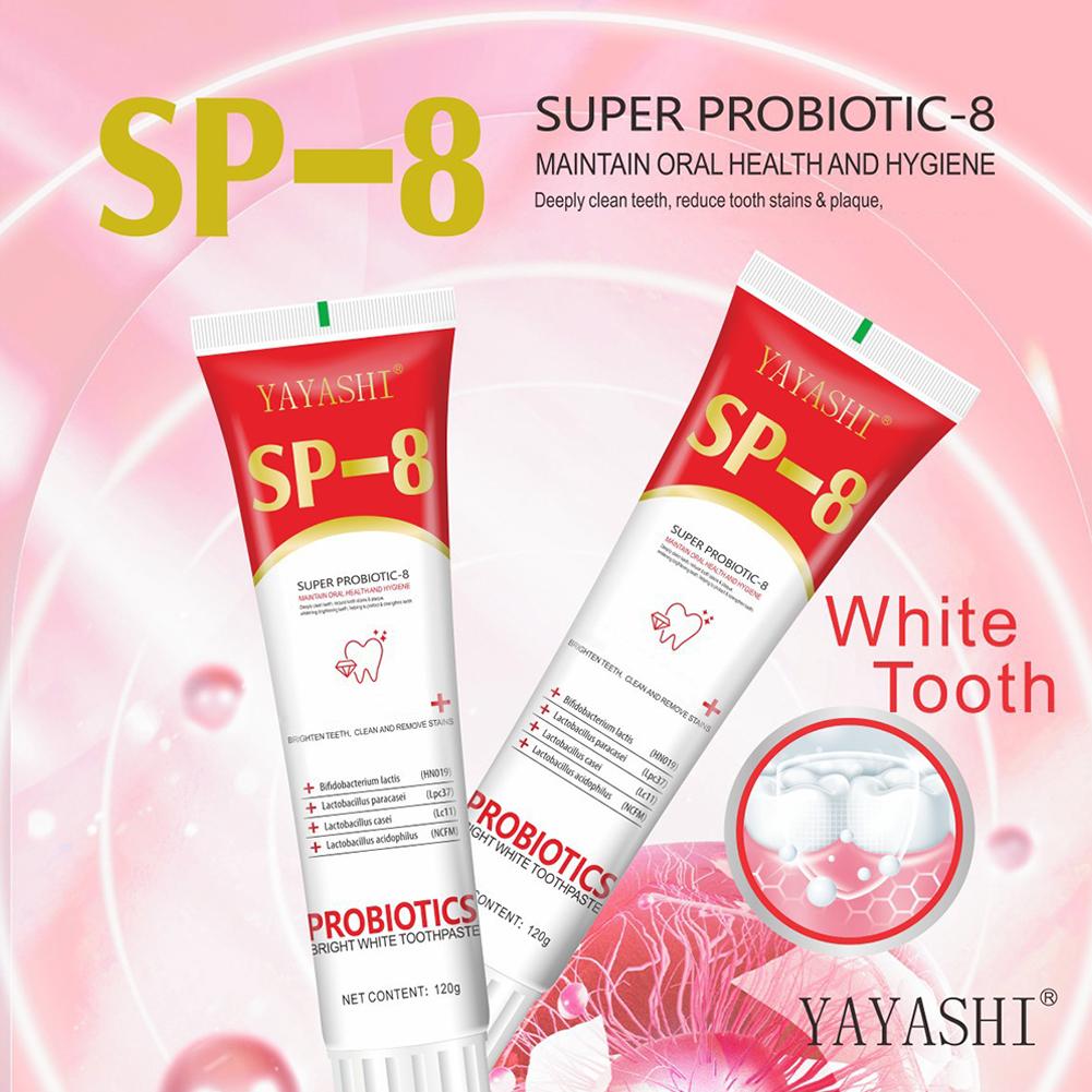 YAYASHI Super Probiotic-8 Toothpaste (120g) | SP-8 Toothpaste for Teeth Whitening, Stubborn Stains, Yellow Teeth, and Fresh Breath
