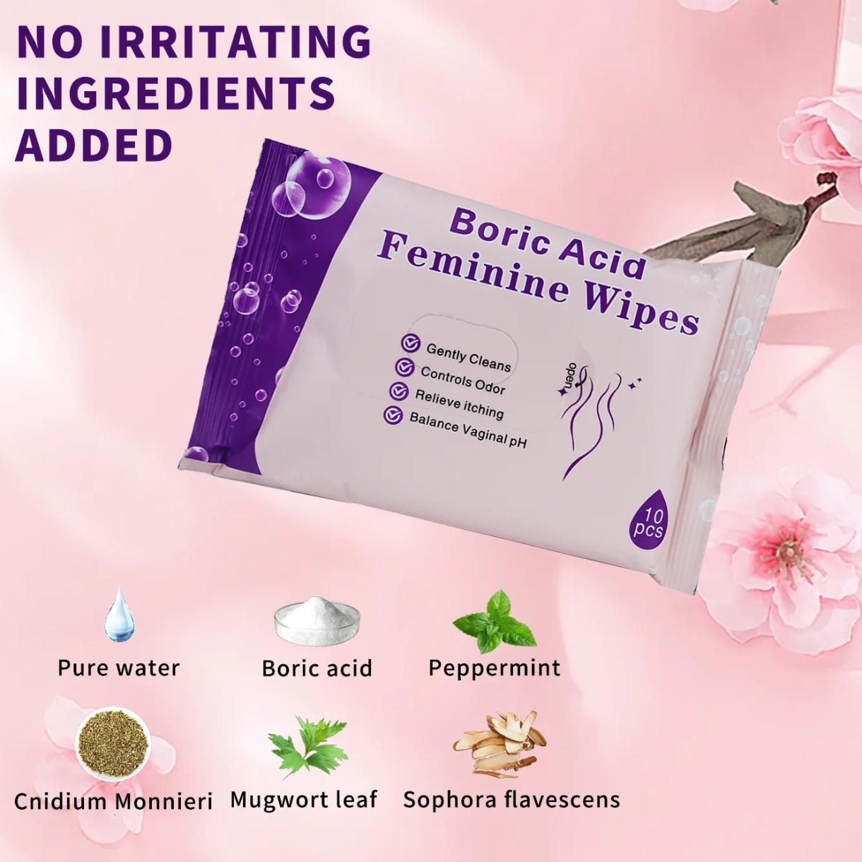 Boric Acid Feminine Wipes (10 pieces) | Yoni Wipes for Vaginal Odor, Itching, pH Balance