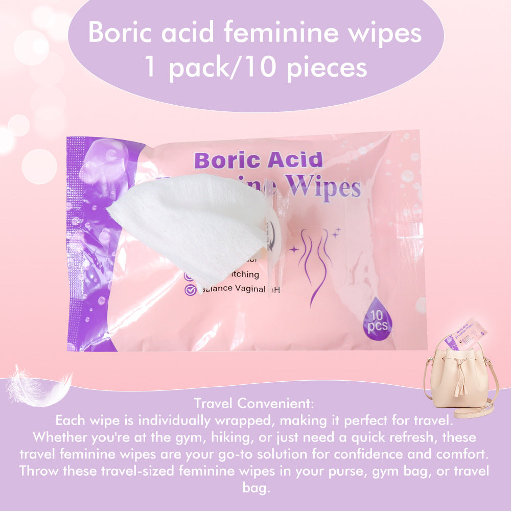 Introducing our Boric Acid Feminine Wipes, your ultimate solution for maintaining freshness and comfort. Each pack contains 10 innovative wipes designed specifically for intimate care.