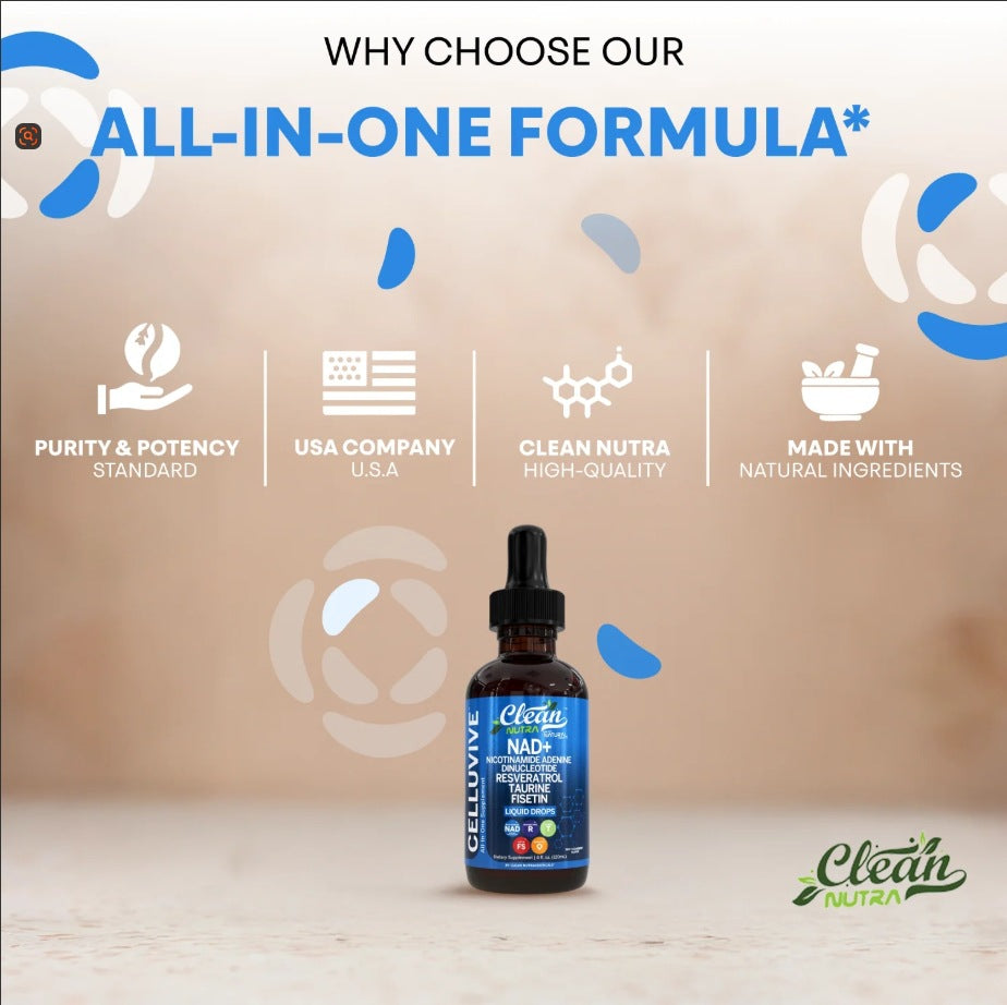 CELLUVIVE NAD+ Liquid Drops with Resveratrol, Taurine, Fisetin and Grape Seed (120ml, 30 servings) | Dietary Supplement for Healthy Aging, Cellular Energy, and Hydration Balance No reviews from 2000000 /per Qty. Add to Cart This item is a recurring or deferred purchase. By continuing, I agree to the cancellation policy and authorize you to charge my payment method at the prices, frequency and dates listed on this page until my order is fulfilled or I cancel, if permitted. Tweet